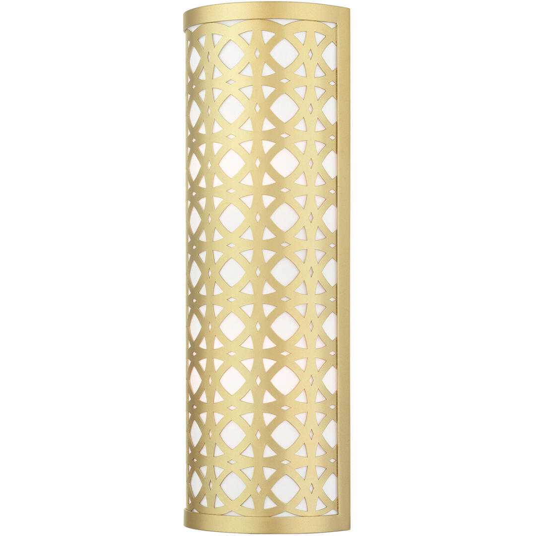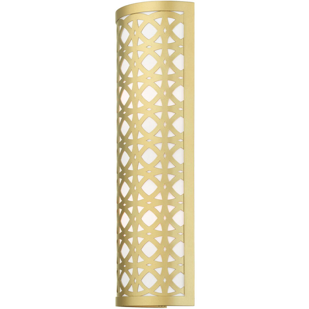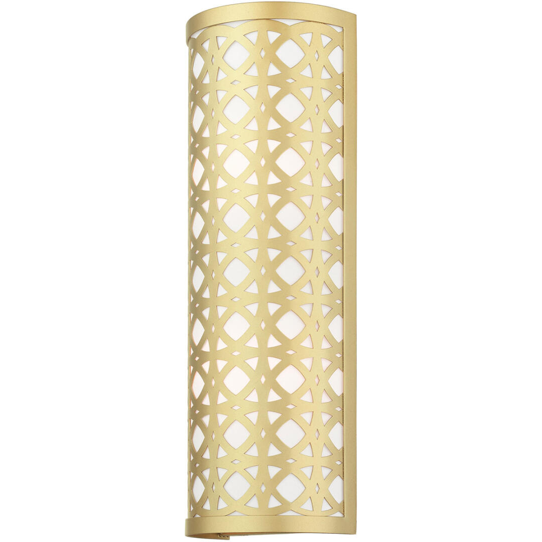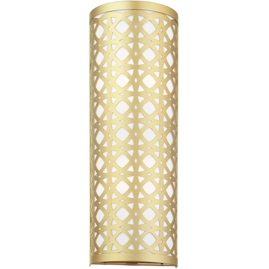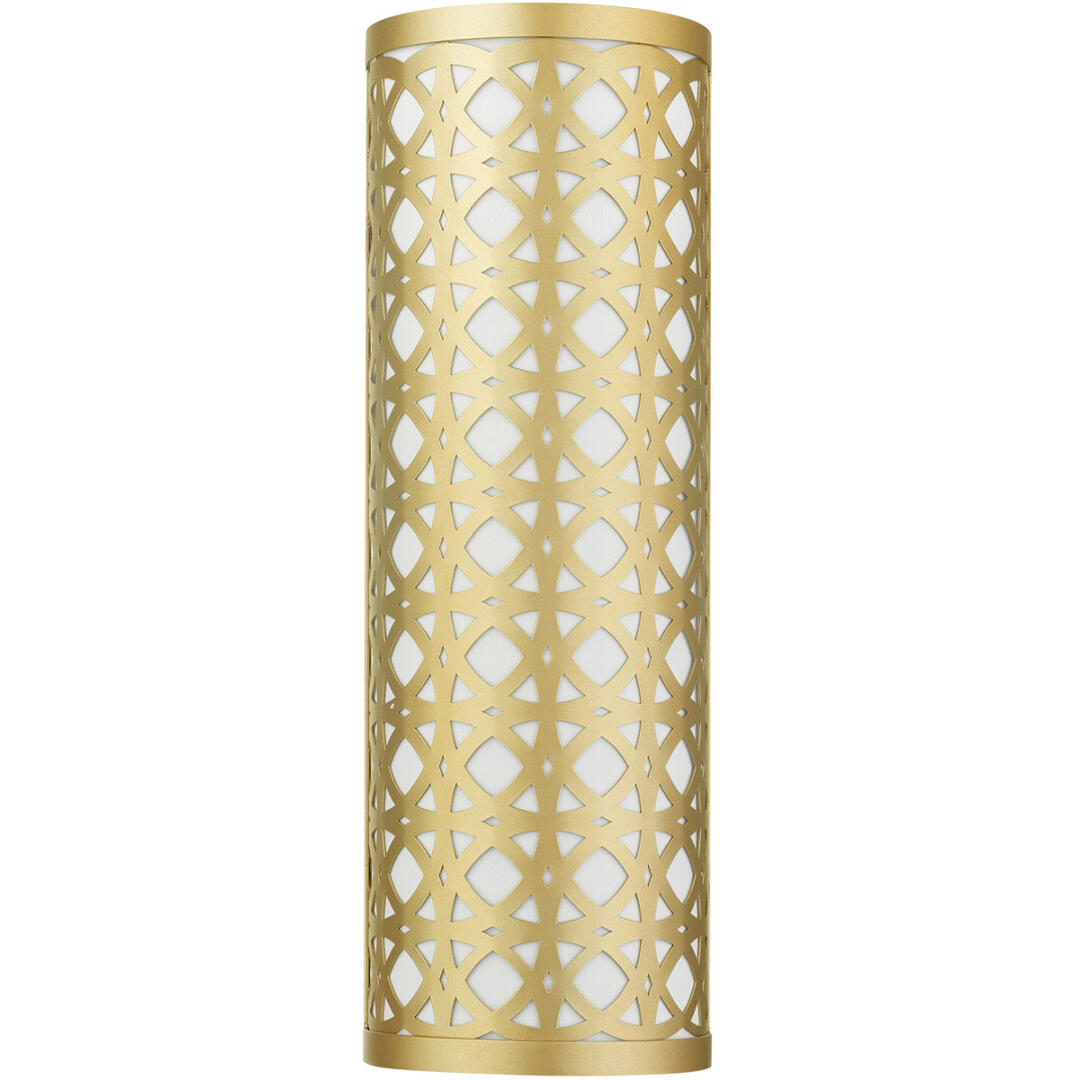 The transitional Calinda series adds refined style and a hint of mystery to your décor. The soft gold finish and an off-white handcrafted hardback shade create warm illumination, while soft light brings to life the intricate fretwork pattern. This medium two-light sconce will add a sophisticated and glamorous look to almost any interior design style. It will work great horizontally or vertically and you can place it in the hallway, living room, bathroom or bedroom.