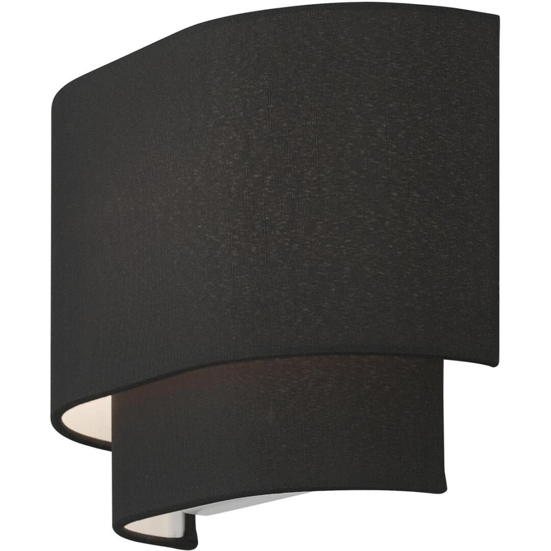 The Bainbridge collection is both modern and versatile. The hand-crafted black fabric hardback shade is set off by the silky white fabric on the inside setting a pleasant mood. Perfect fit for the hallway, bathroom, kitchen and a small bedroom. This sleek design is shown in a black finish.