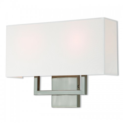 16 inch 2 Light Brushed Nickel ADA Wall Sconce with Hand Crafted Off-White Fabric Shade-Lighting Lumens
