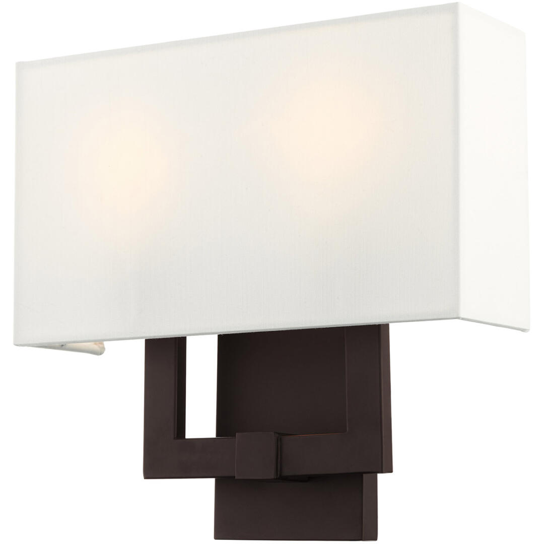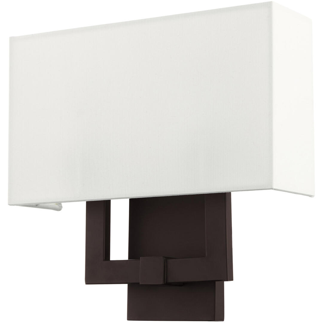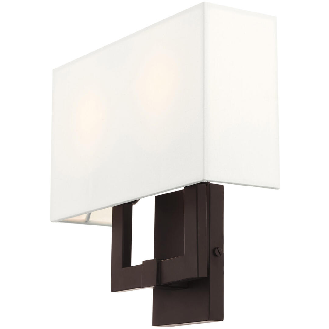 13 inch 2 Light Bronze Wall Sconce with Hand Crafted Off White Fabric Hardback Shade Shade-Lighting Lumens