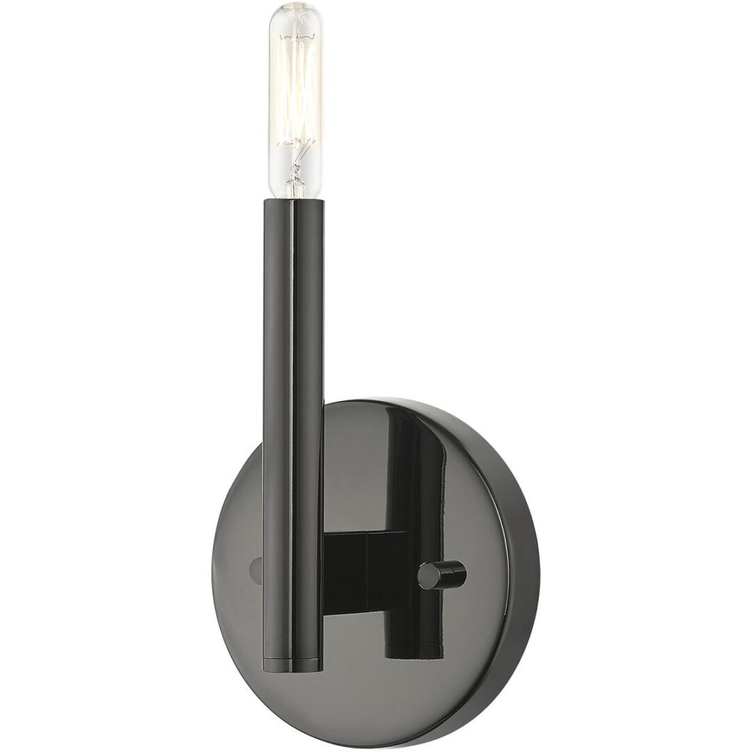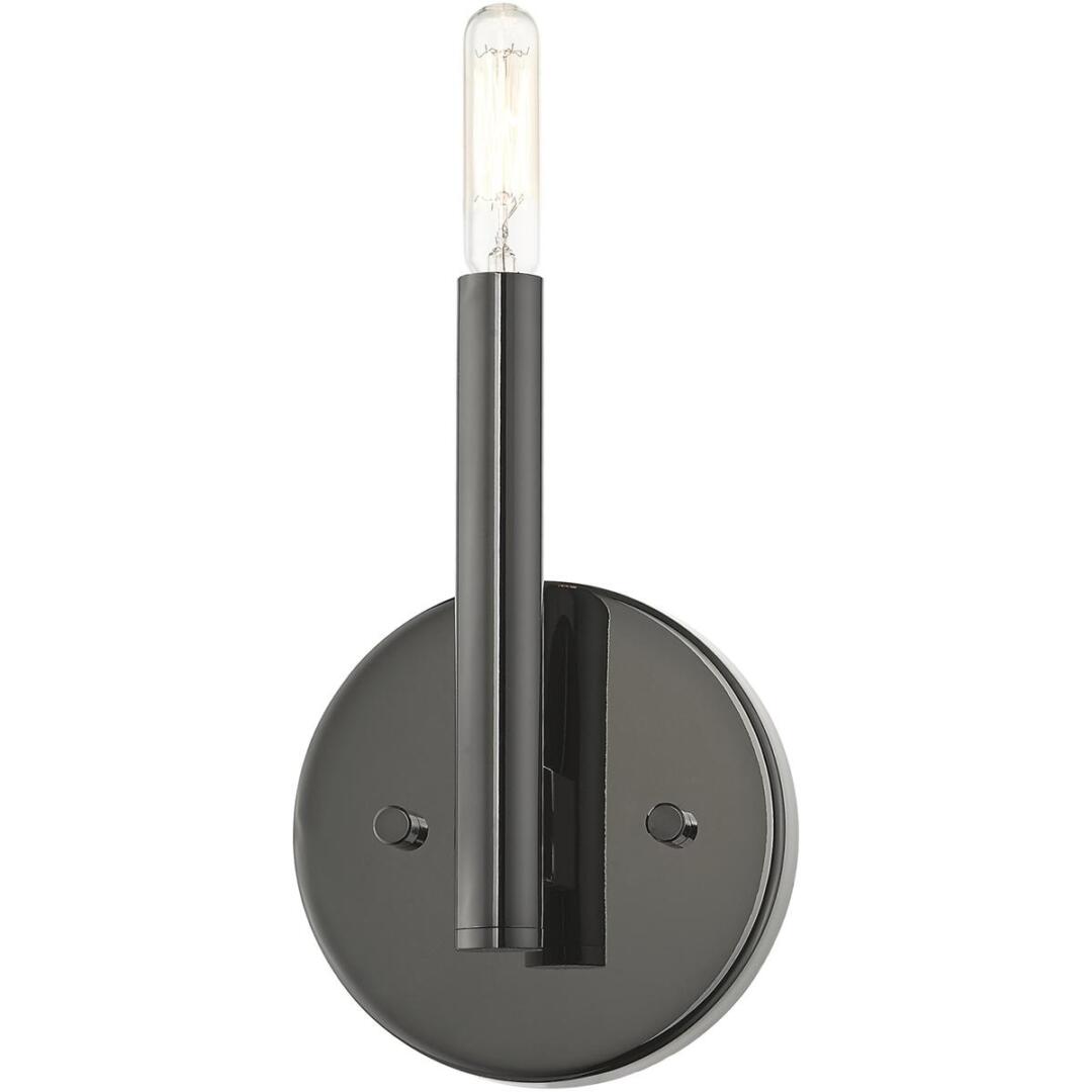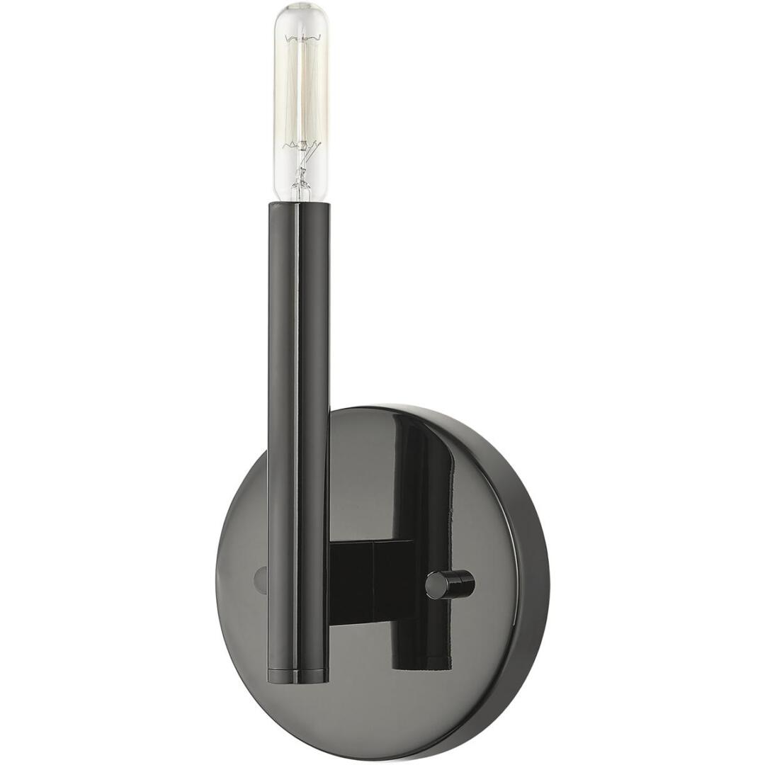 An exposed bulb socket is fixed over a black chrome finish to create an eclectic look perfect for mid century modern or transitional spaces wanting an industrial touch.