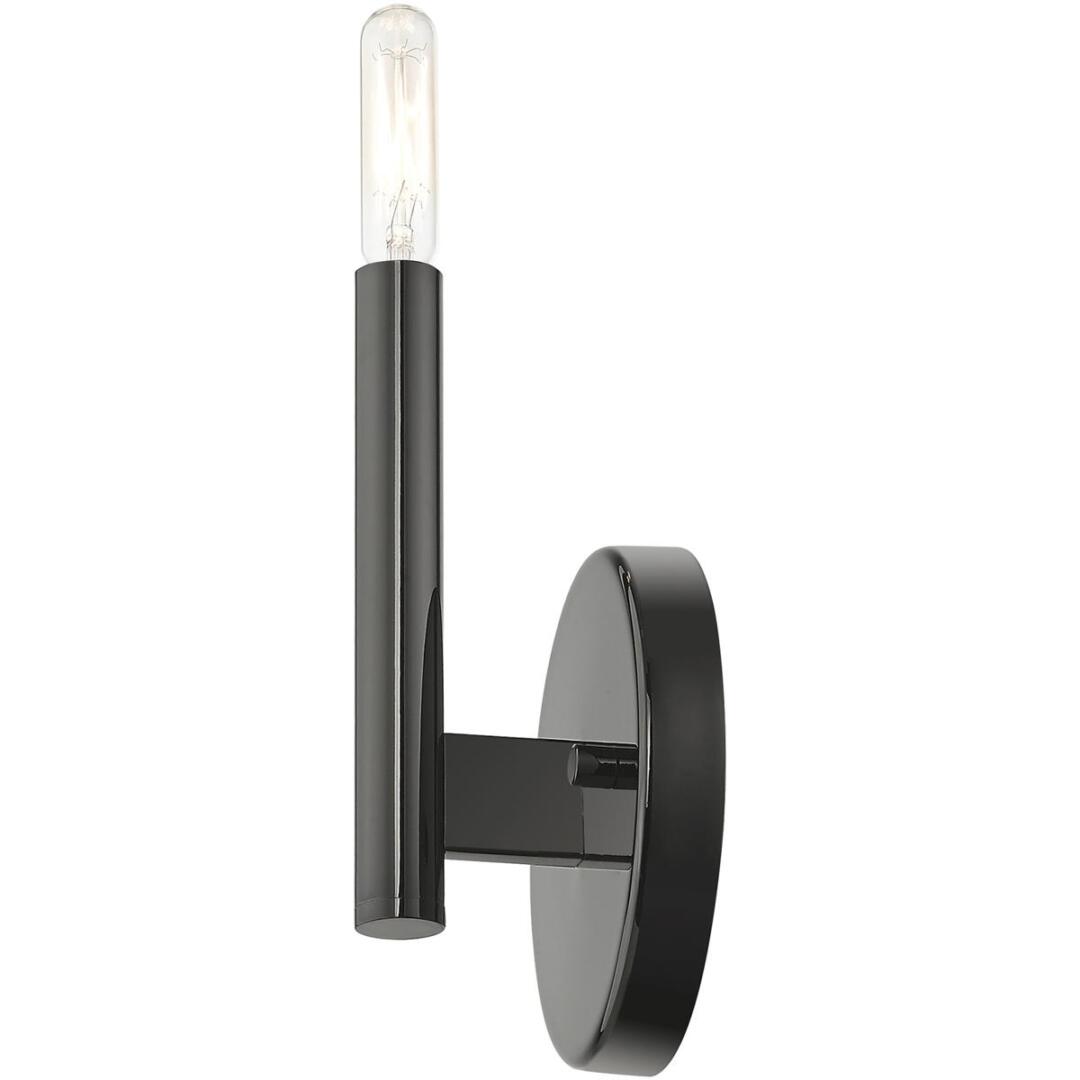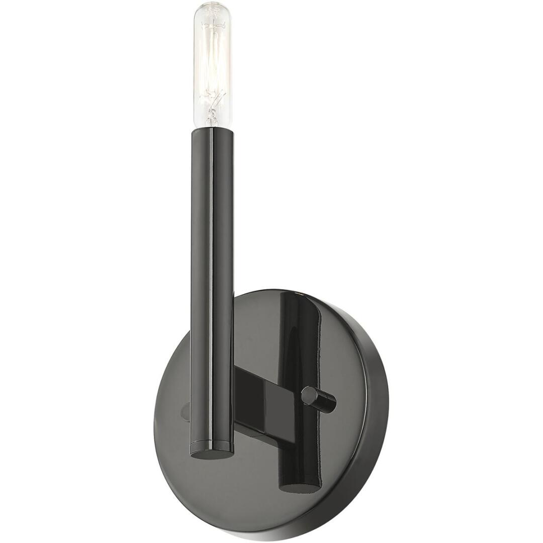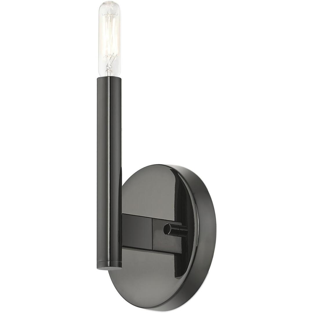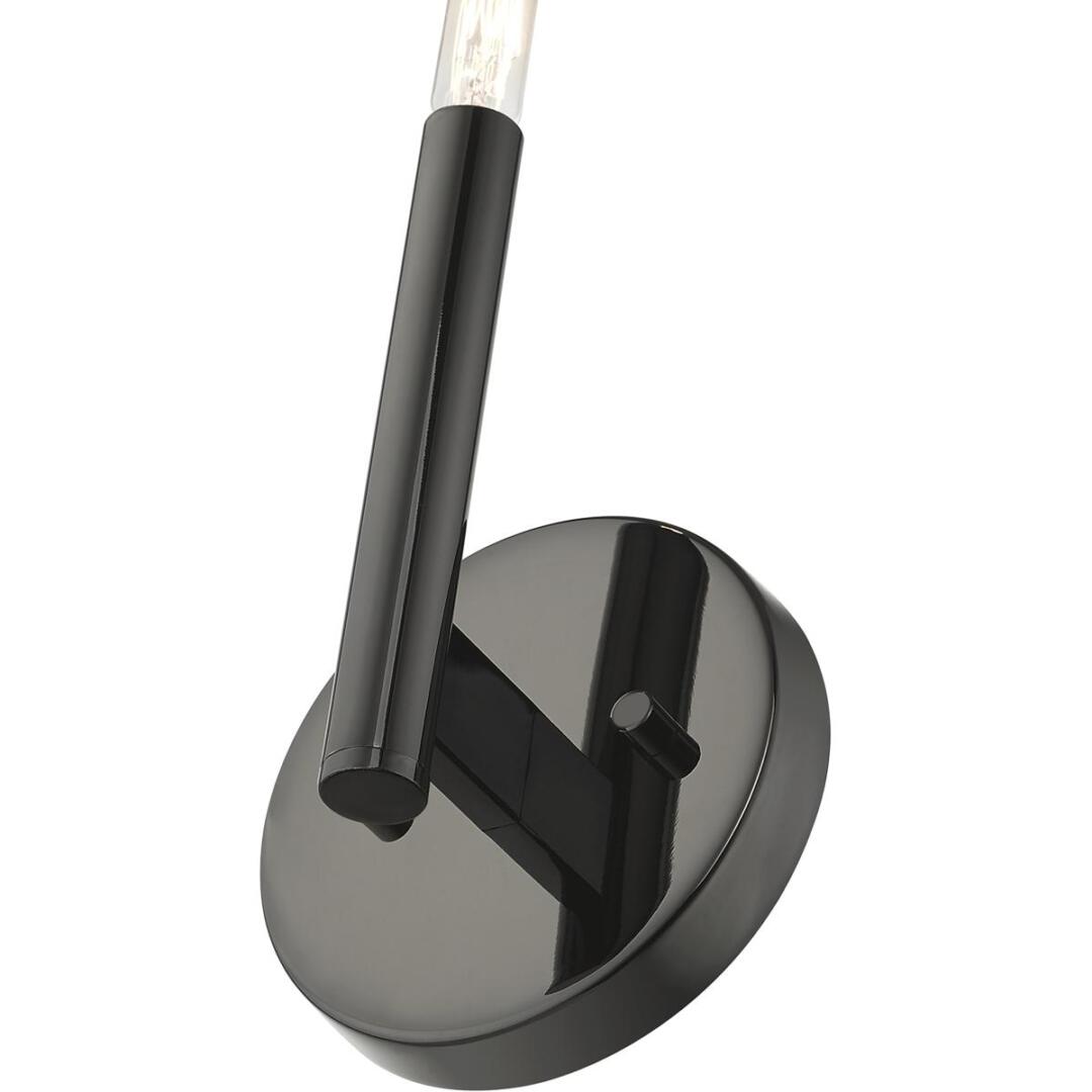 An exposed bulb socket is fixed over a black chrome finish to create an eclectic look perfect for mid century modern or transitional spaces wanting an industrial touch.