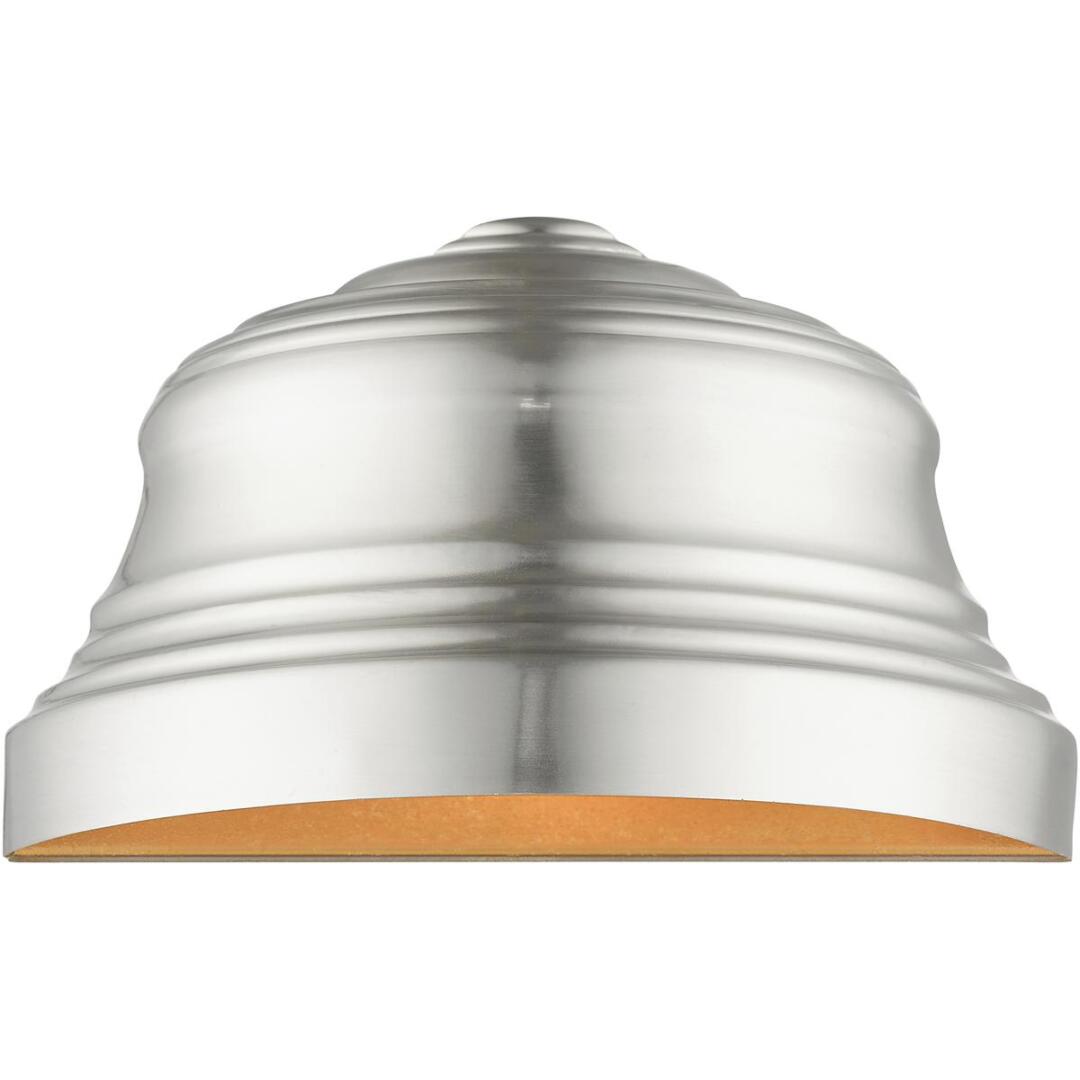 | Glass/Shade Type: Brushed Nickel Steel Shade with Gold Finish Inside | Diameter: N/A |