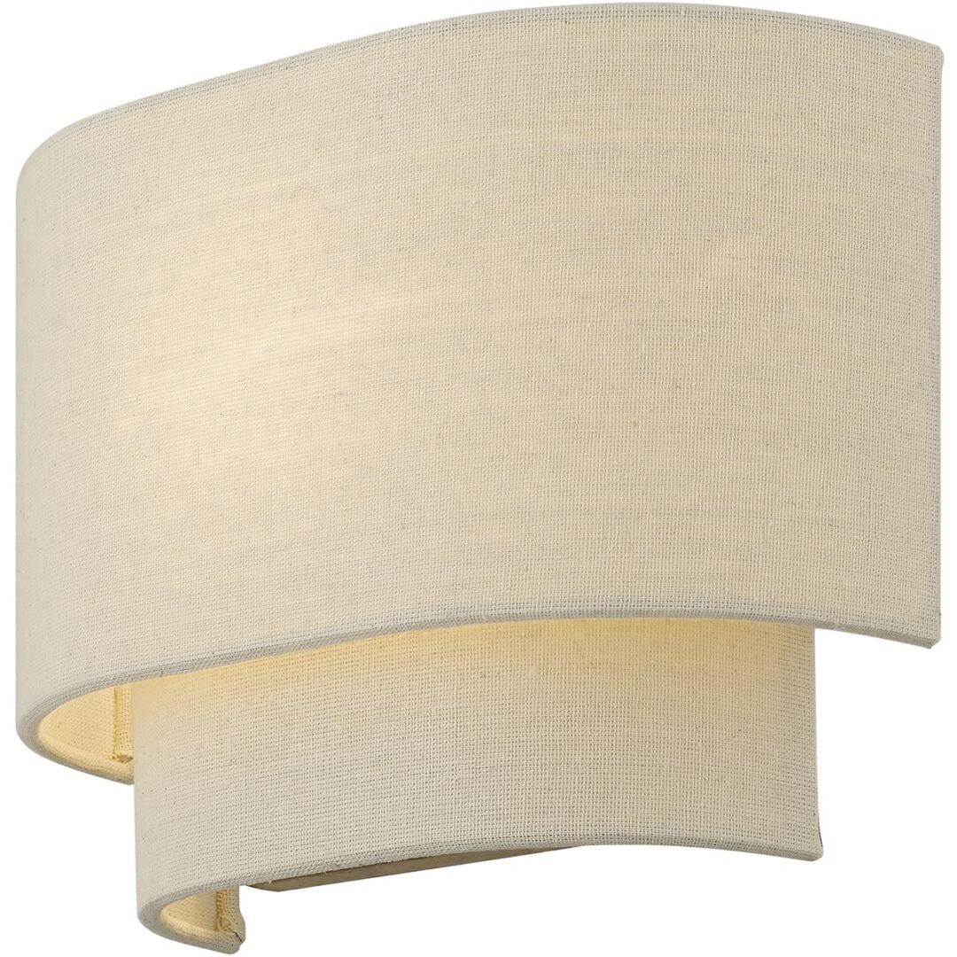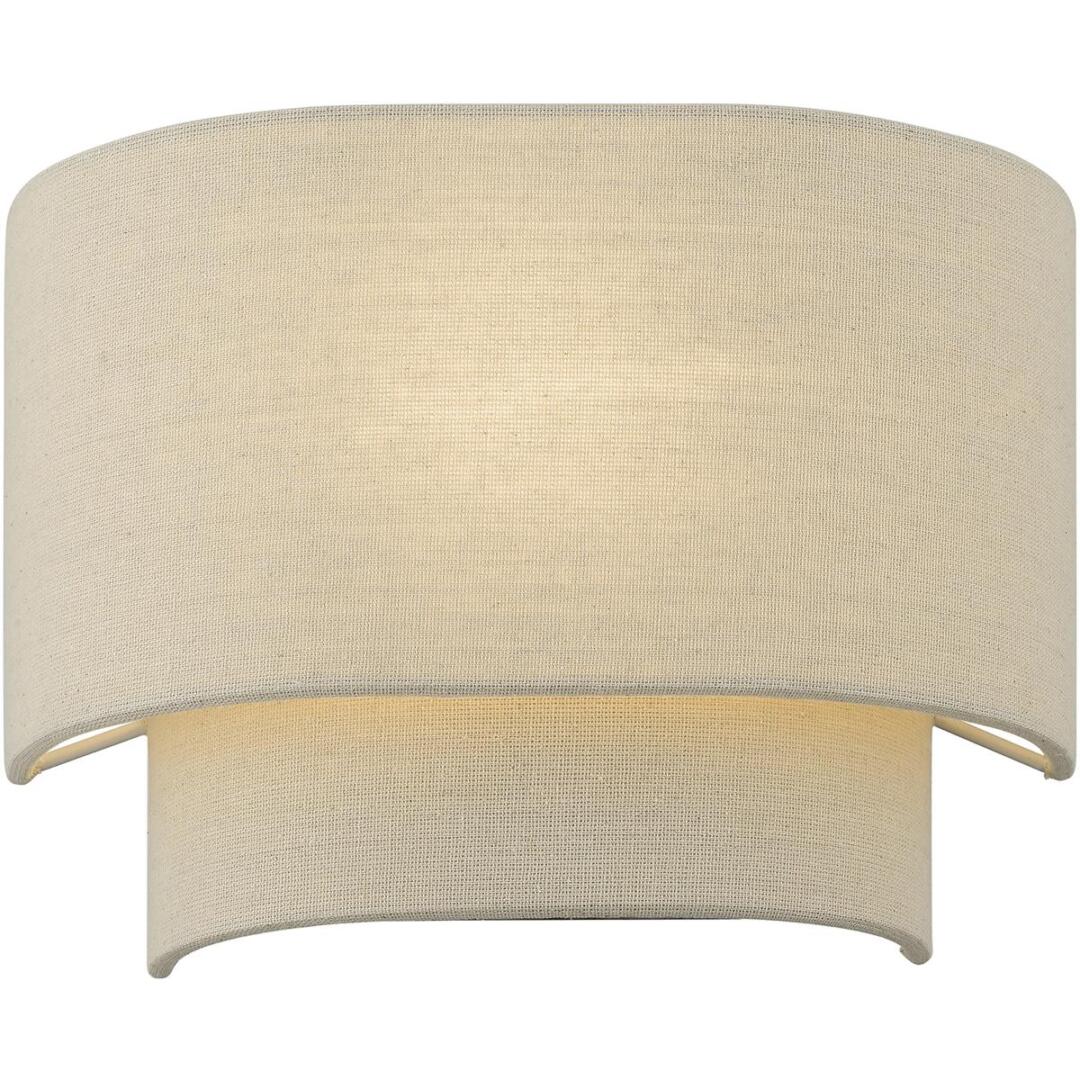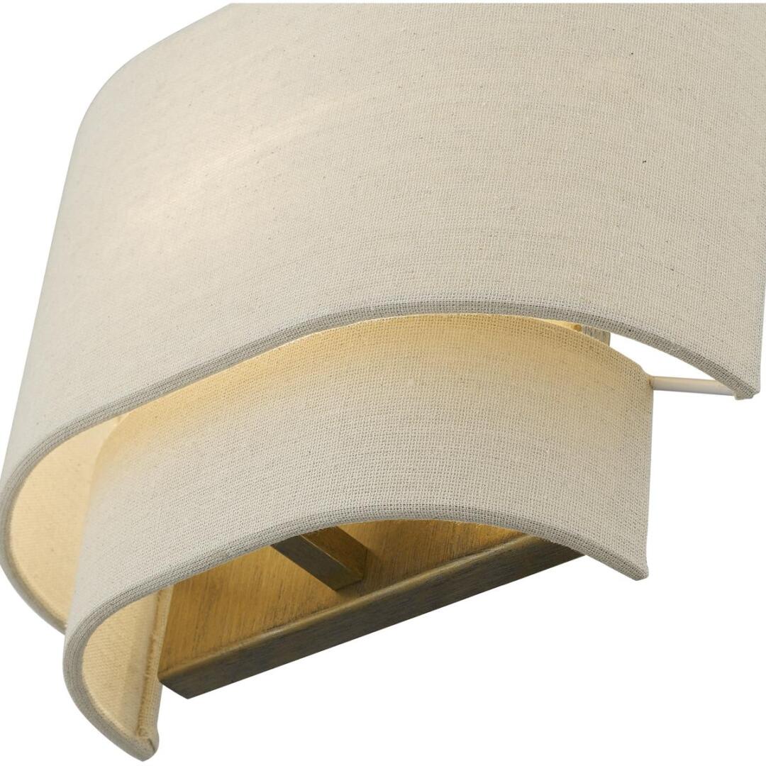 The Gladstone sconce is both modern and versatile. The hand-crafted ash gray colored fabric hardback shade sets a pleasant mood. The one-light double shade adds character to this handsomely styled ADA wall light. This sleek design is shown in an antique gold leaf finish.