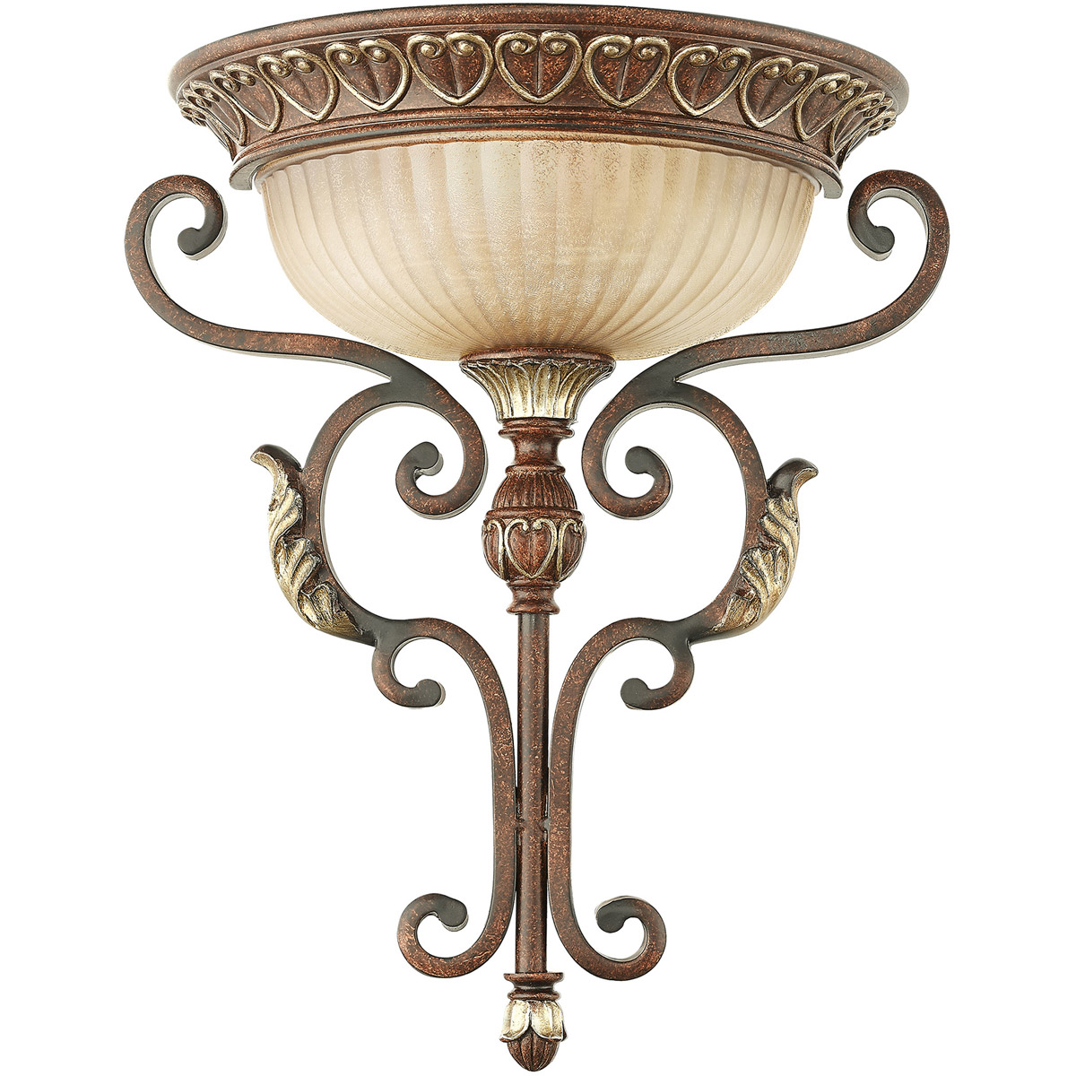 The Villa Verona collection of interior lighting features handsomely styled ironwork complete with scrolling details. This wall sconce features a Verona bronze finish with aged gold leaf accents and rustic art glass. Display casual, traditional style with this beautiful fixture.